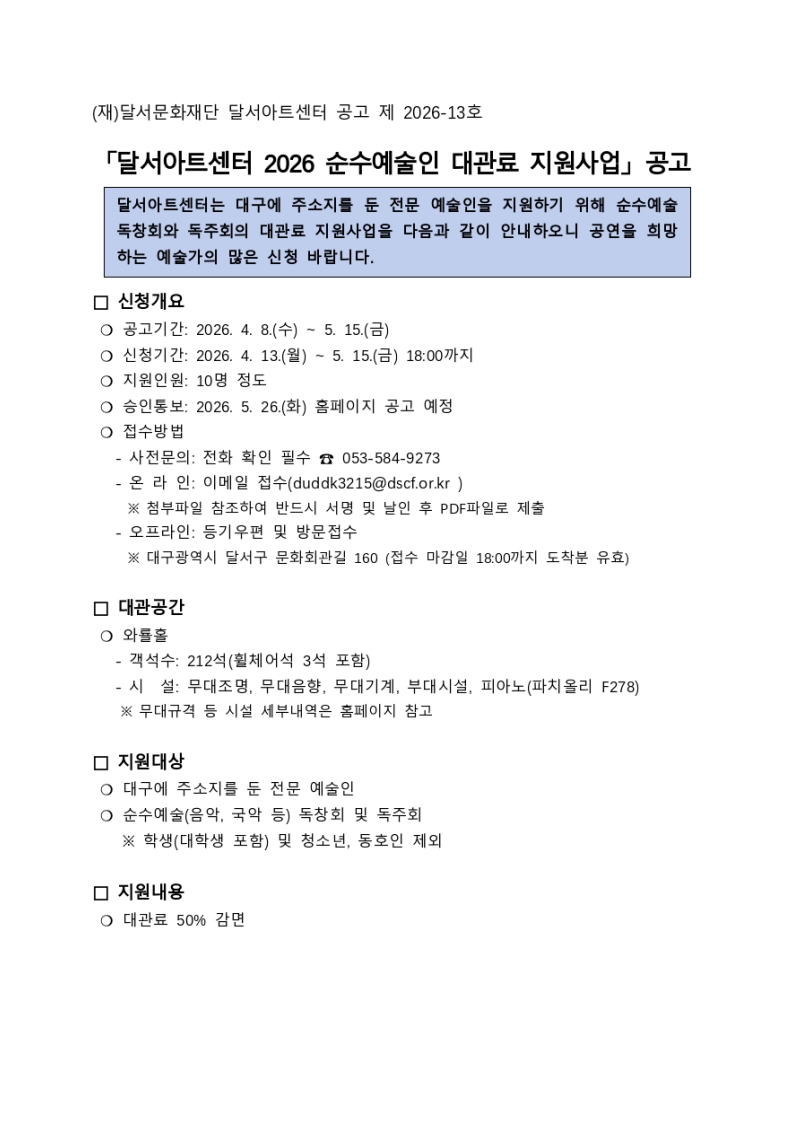 2026 하반기 순수예술인 대관료 지원사업 공고.pdf