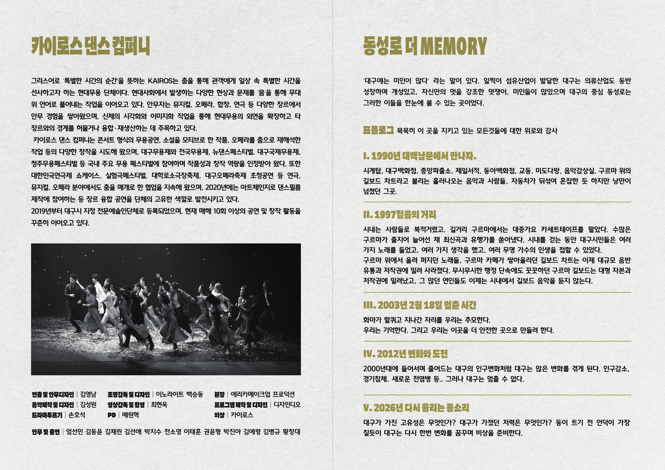 젊음의 거리 동성로가 다양하게 변화해 온 모습을 담은 <동성로 더 Memory> 공연을 선보인다.